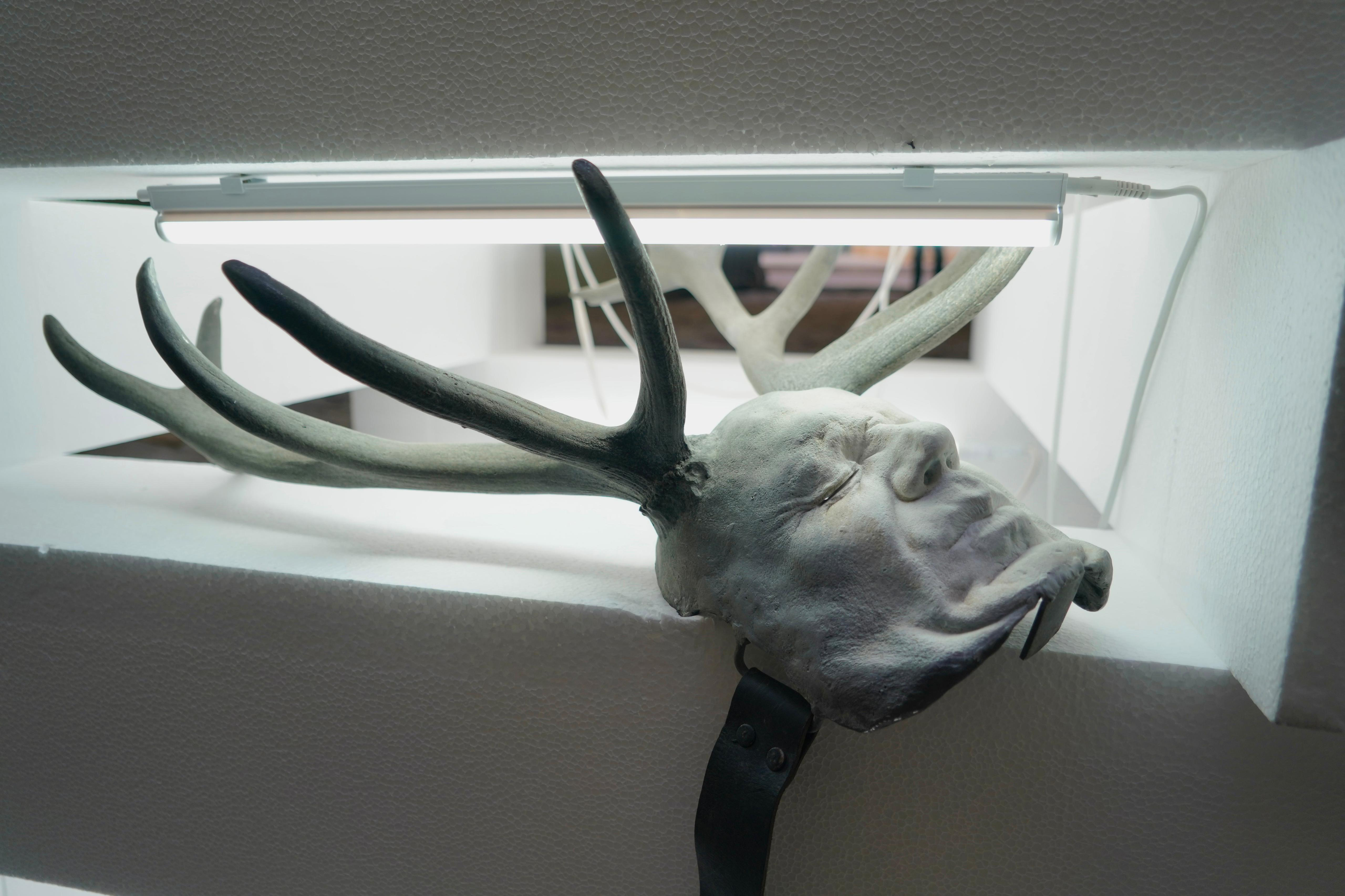 Para la exposición, Roig produce además la pieza ** La máscara del ciervo **, creada expresamente para este proyecto y presentada como instalación en el patio.