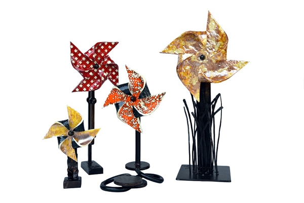 Esperant el vent és una col·lecció en què l’artista interpreta una icona de la nostra infància, el molinet de paper. Objectes immòbils a l’espera que una brisa els faci adquirir vida.