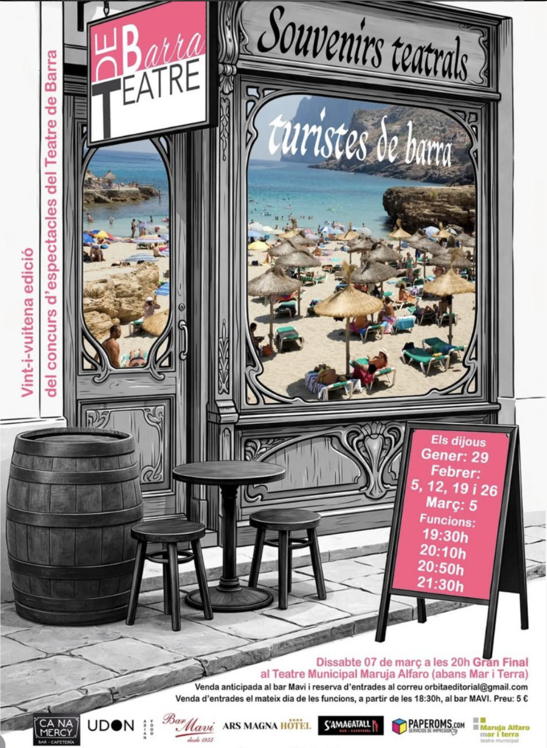 Wenn Sie Lust auf einen anderen Plan haben (und zwar ganz nach Palma), dann ist es das Richtige für Sie: Miniformat-Theater in Bars, ein paar Zentimeter von den Schauspielern entfernt, und Sie gehen „Bar für Bar“ und wählen Ihre eigene Route. In diesem Jahr steht die Ausgabe ganz im Zeichen der Aktualität: Humor, Satire und Tragikomödie rund um den Tourismus und das Leben auf der Insel (Motto: „Theater-Souvenirs, Bar-Tourismus“).