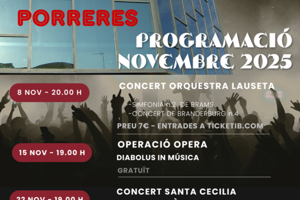 El Auditori de Porreres presenta su agenda cultural de noviembre con una variada programación que combina música clásica, ópera, humor y tradición local.