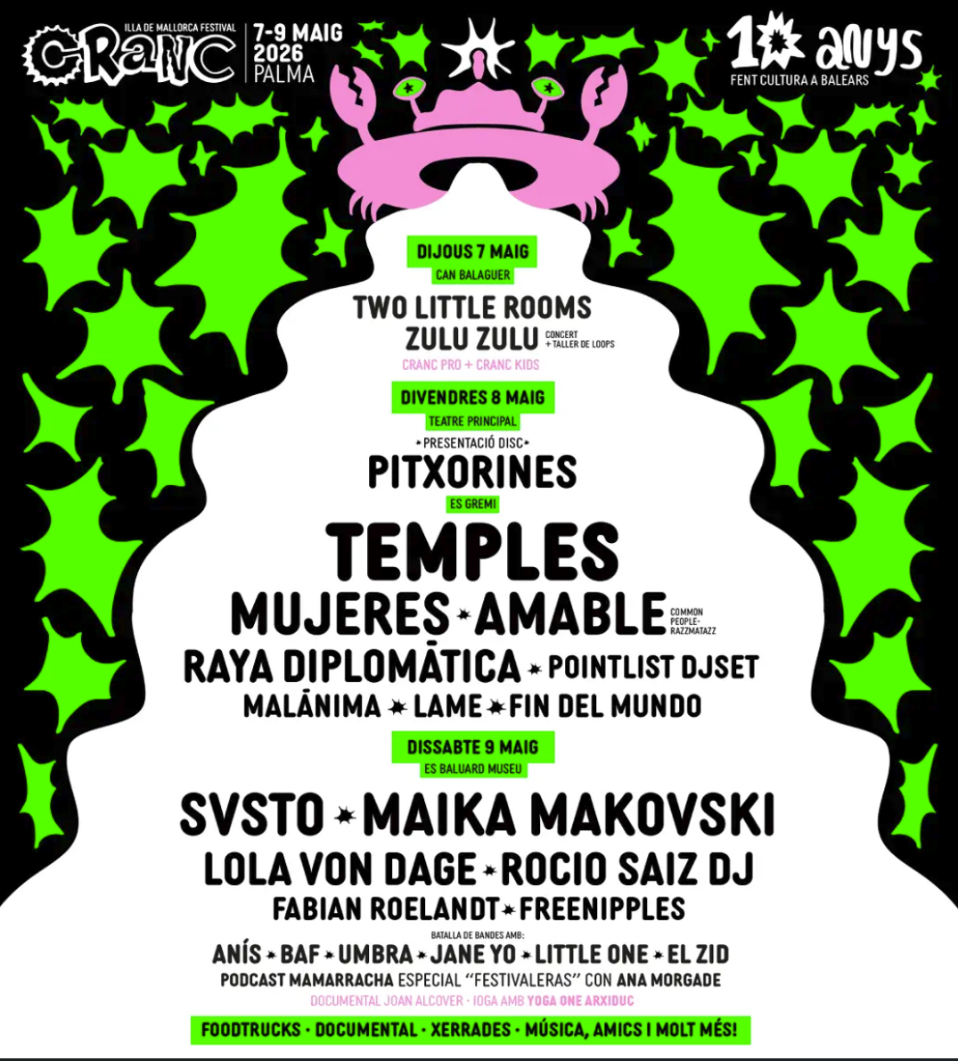El festival combina una amplia oferta de música en directo, desde pop, indie y rock hasta propuestas más alternativas y experimentales, con actividades gratuitas y de pago, para que todos puedan disfrutar de la experiencia CRANC.